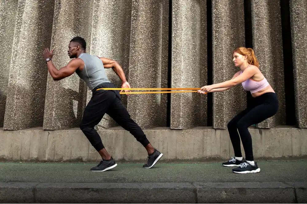 Using a resistance band is a fun way to make scapula alata exercises harder.